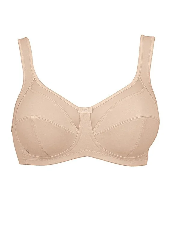 Die harmonische Linienführung und die semitransparente Dekolleté-Blende setzen die feminine Figur dezent und elegant in Szene – und das bei einer perfekten Passform und Halt bis in große Größen. Dies gelingt auch ohne Bügel: Beim diesem Komfort-BH mit einem vorgeformten Cup aus Super-Micro Ware, einer anatomisch geformten Unterbrust und einer seitlich verlaufenden, gefütterten Blende, die bis in den Träger reicht. Die Komfort-Träger sind im Schulterbereich zusätzlich mit einem Komfort-Polster ausgestattet und werden mit zunehmender Größe breiter.