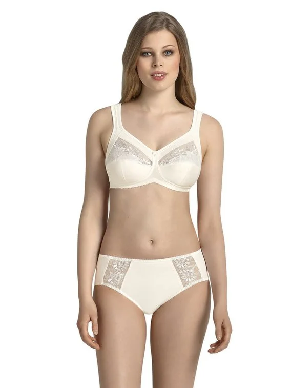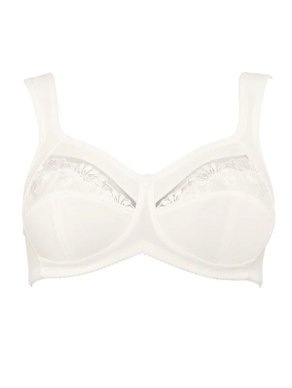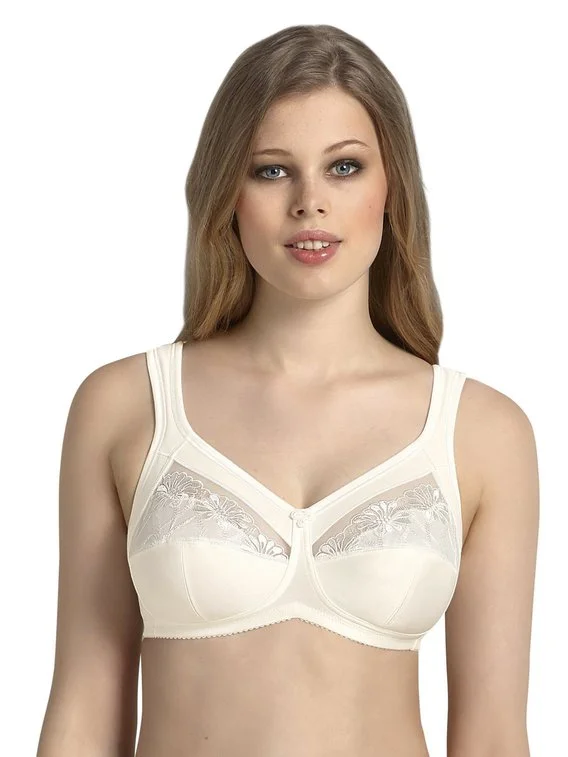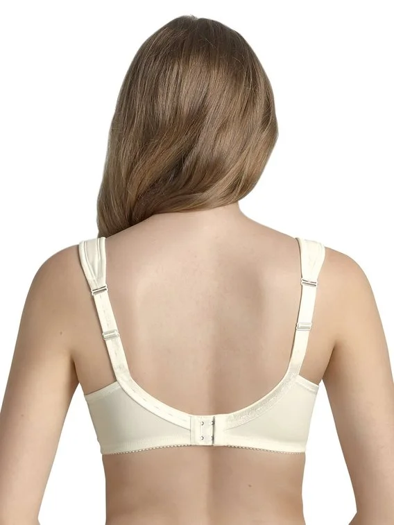 Der Entlastungs-BH ohne Bügel der Serie Safina von ANITA ist mit breiten gepolsterten Trägern ausgestattet, die den Rücken und Nackenbereich angenehm entlasten. Die im Dekolleté verarbeitete, transparente Stickerei ist im Bereich der Brustspitze blickdicht unterlegt.