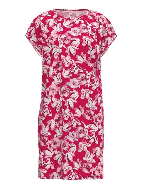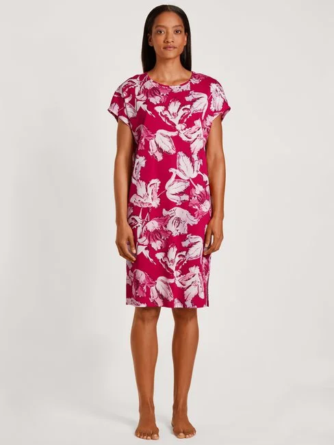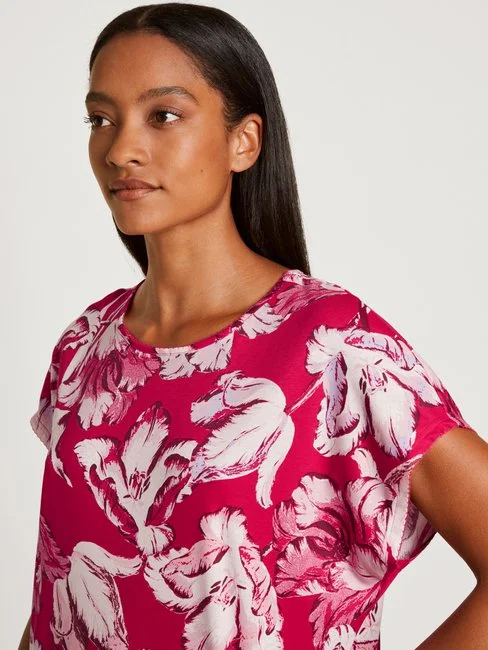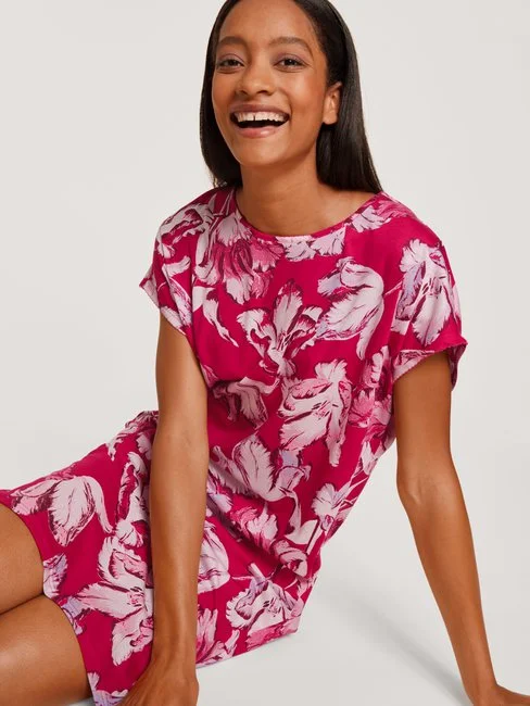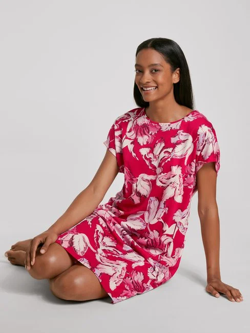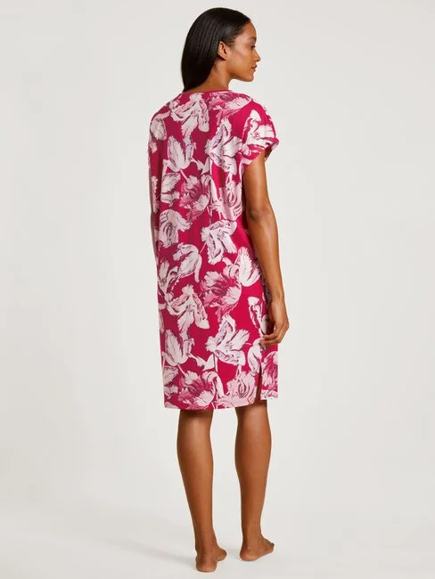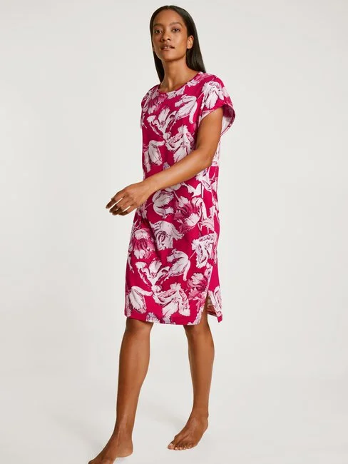 Im opulenten Papageientulpenprint präsentiert CALIDA das Kurzarm-Nachthemd aus der BLOOMING NIGHTS Serie. Weiche Supima®, Baumwolle mit swiss+cotton-Gütesiegel umschmeichelt die weibliche Silhouette angenehm und verzaubert mit tollem Tragegefühl. Ein feminines Nightshirt zum rundum Wohlfühlen.