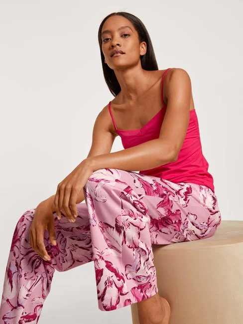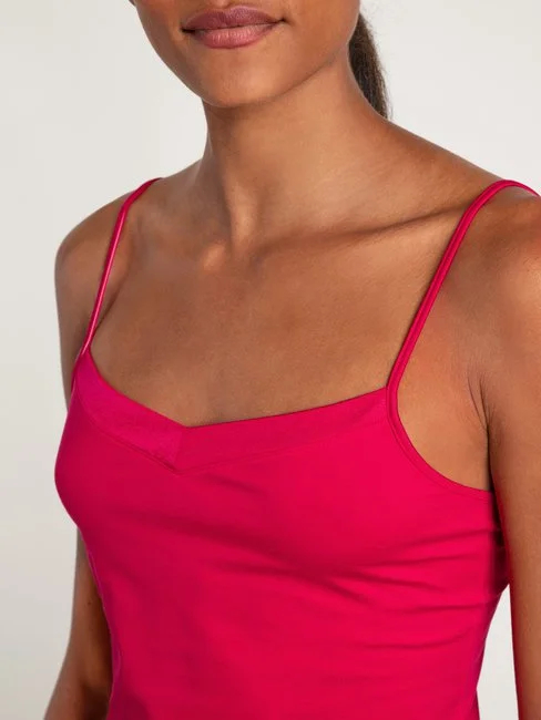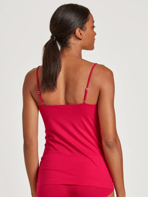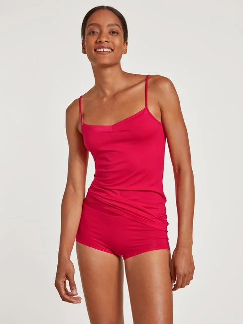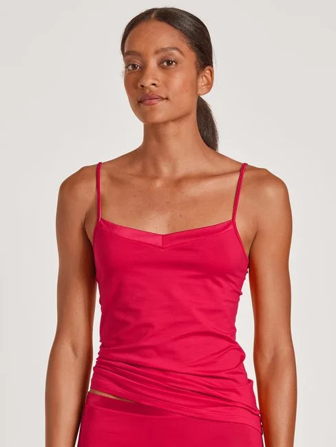 Edles Spaghetti-Top aus der Serie CATE von CALIDA. Das Unterhemd ist aus hochwertiger Supima®-Baumwolle gefertigt und mit verstellbaren Trägern ausgestattet. Die Satinblende am flachen V-Ausschnitt gibt dem Shirt einen charmanten Touch.