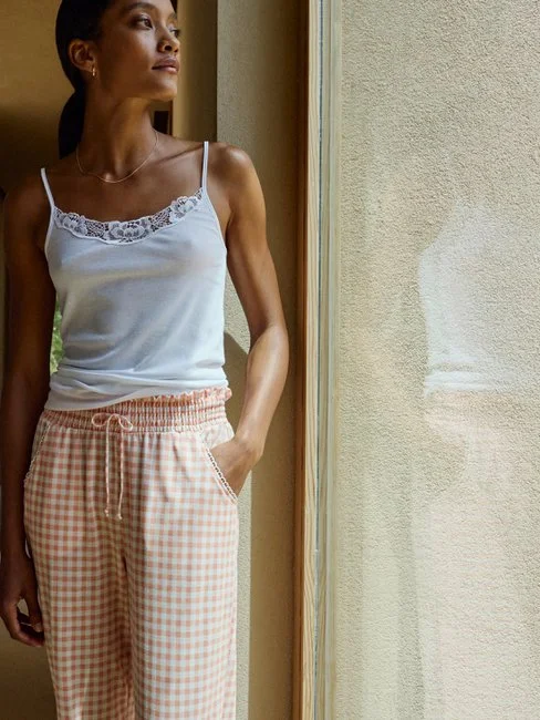 Eine Ode an Südfrankreich. Mit der FAVOURITES PROVENCE Kollektion präsentiert CALIDA einen farbenfrohen, frischen Style. Die karierte Bündchen-Pants aus fliessendem, atmungsaktiven Cotton-Fibremix liegt angenehm weich auf der Haut und verwöhnt diese mit tollem Tragekomfort. Der gecrinkelte Bund mit Bindeband und elastische Bündchen am Beinabschluss runden den Look perfekt ab. Kombiniert zu einem der unifarbenen Shirts aus den FAVOURITES Serien entsteht das ganz persönliche Lieblings-Set zum Wohlfühlen und Entspannen.