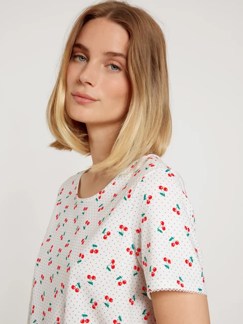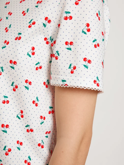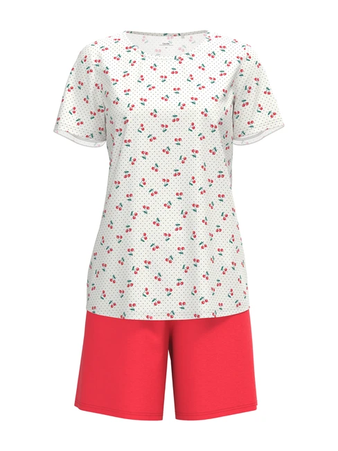Bei dem modernen FRUITY DREAMS Kurz-Pyjama kombiniert CALIDA ein gemustertes Oberteil zu einer unifarbenen Shorts. Der Style aus reiner Baumwolle ist bei 60°C waschbar und somit äusserst pflegeleicht und langlebig.