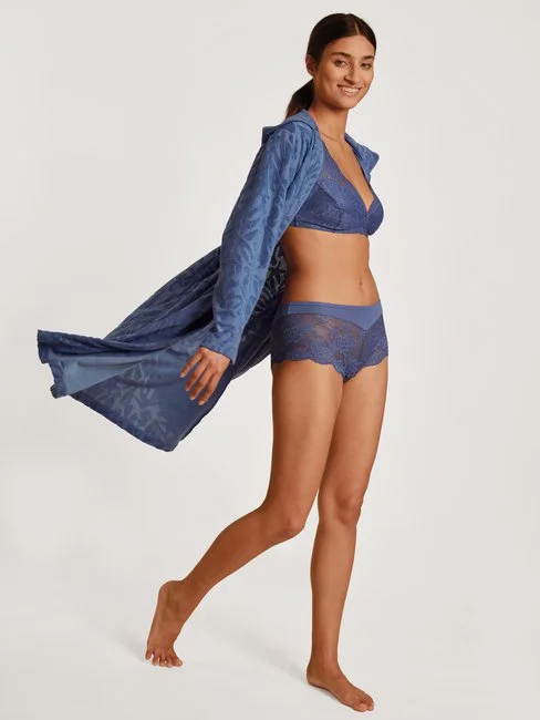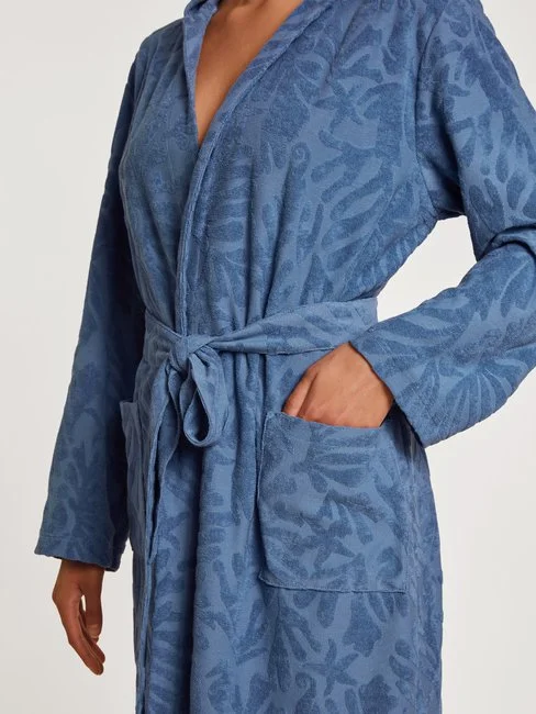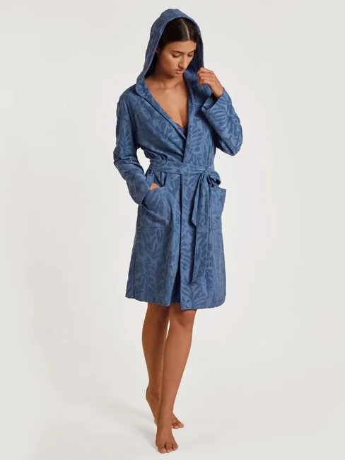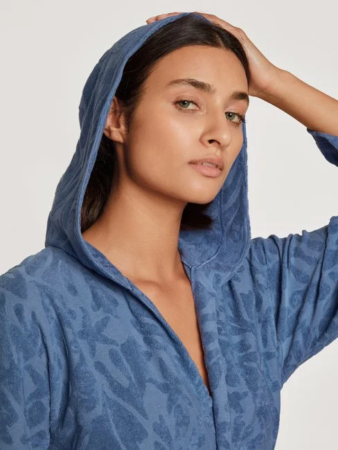 Der Bademantel aus der LOUNGE COAST Serie von CALIDA punktet nicht nur in Sachen Design, sondern auch mit Komfort und natürlicher Saugkraft. Der innovative Frotteemix aus Baumwoll-Fibremix liegt angenehm weich auf der Haut. Ein Bindeband und eine grosse Kapuze machen den Bademantel zum praktischen Pool- und Strandbegleiter.