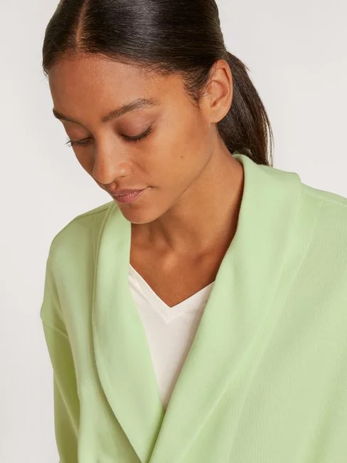 Die Jacke aus der LOUNGE ROSY Serie von CALIDA verleiht jeder Garderobe einen komfortablen und dennoch gepflegten Homeoffice-Look. Die Jacke in Knit-Optik ist aus feinem Baumwoll-TENCEL™-Mix gefertigt und sorgt für höchsten Tragekomfort. Das breite Bindeband, seitliche Eingrifftaschen und der lockere Fit runden den sportlichen, aber dennoch eleganten Look perfekt ab.