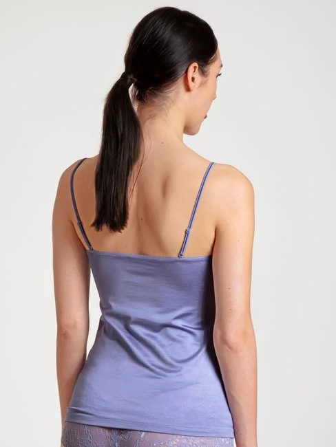 Das Spaghetti-Top der Serie SENSUAL SECRETS von CALIDA verführt mit zarter, transparenter Spitze und verwöhnt Ihre Haut mit weicher Baumwolle und edlem Glanz aus Viskose. Durch die Dreifachplattierung ist auf der Haut reine Baumwolle zu spüren, während die Aussenseite schimmernde Viskose zeigt. Besonders wertvoll ist die reichhaltige, hochwertig verarbeite Spitze, die das Dekolleté verführerisch einfasst.