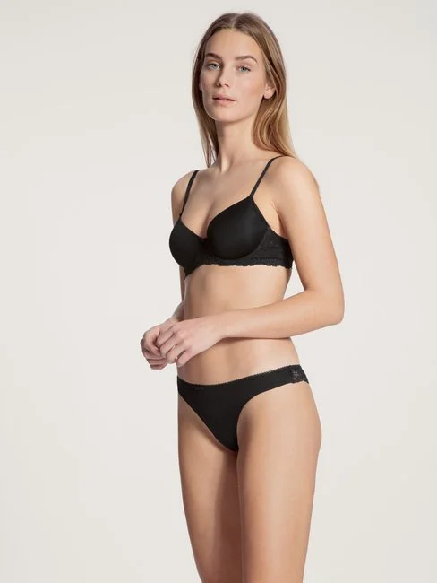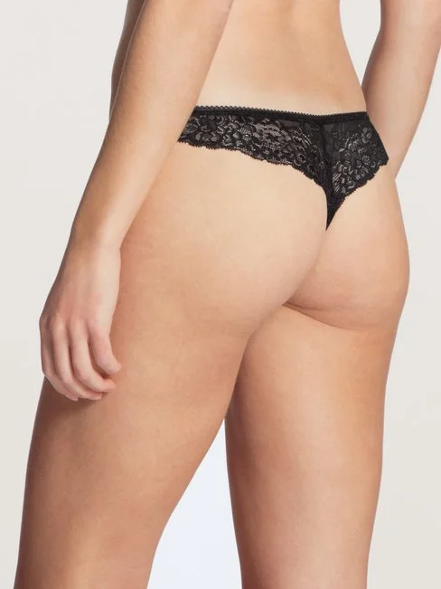 String der Serie SENSUAL SECRETS von CALIDA. Die schöne Kombination aus Baumwolle und Viskose-Mischung und transparenter, verführerischer Spitze auf der Rückseite macht den String der Serie SENSUAL SECRETS zu etwas ganz Besonderem. Eine Mäusezahnspitze am Bund betont den Abschluss des Strings.