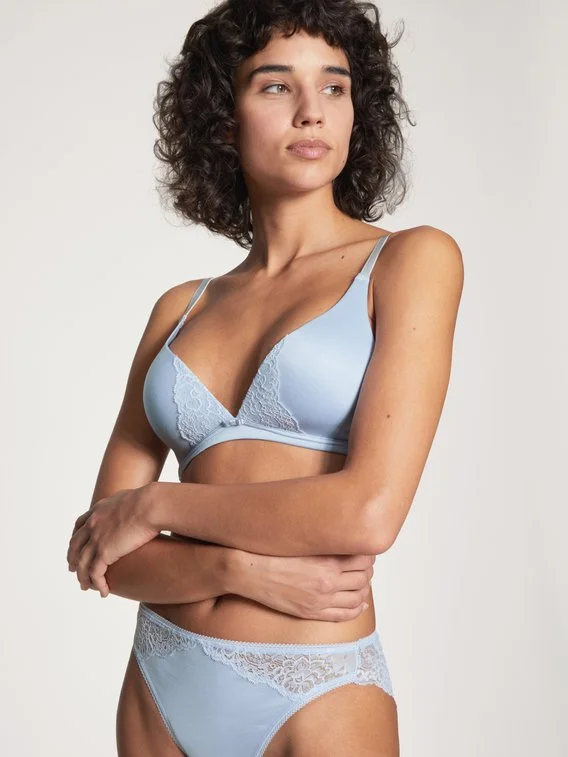 Neue Schnittform aus der beliebtes SENSUAL SECRETS Serie von CALIDA. Die Reihe der BHs wird durch ein komfortables Modell ohne Bügelverarbeitung erweitert. Die glanzvolle Viskose an der Außenseite wurde gekonnt mit verführerischer Spitze veredelt.