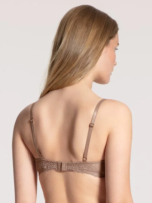 Neue Schnittform aus der beliebten SENSUAL SECRETS Serie von CALIDA. Die Reihe der BHs wird durch ein komfortables Modell ohne Bügelverarbeitung erweitert. Die glanzvolle Viskose an der Aussenseite wurde gekonnt mit verführerischer Spitze veredelt.