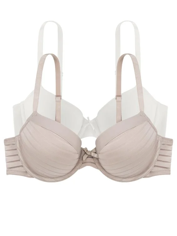 Diese zwei T-Shirt BHs aus der Serie „Louise“ von DORINA bilden den perfekten Doppelpack. Ein BH in schlichter, glatter Mikrofaser, der Zweite mit stylischen Burnout-Streifen. Die vorgeformten Cups mit Bügel zaubern eine schöne und natürliche Brust. Das glatte Design eignet sich perfekt für enganliegende Kleidung.
