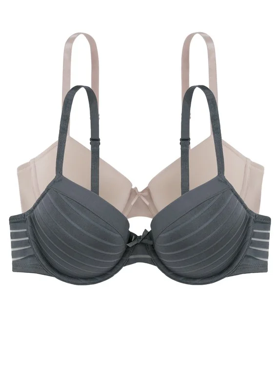 Diese zwei T-Shirt BHs aus der Serie „Louise“ von DORINA bilden den perfekten Doppelpack. Ein BH in schlichter, glatter Mikrofaser, der Zweite mit stylischen Burnout-Streifen. Die vorgeformten Cups mit Bügel zaubern eine schöne und natürliche Brust. Das glatte Design eignet sich perfekt für enganliegende Kleidung.