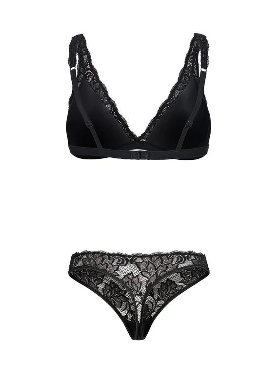 Das Wäsche-Set von ERLICH TEXTIL setzt sich aus dem femininen „Franziska“ Schalen-BH und dem sexy „Emilia“ String zusammen. BH und Höschen bestehen aus feiner, floraler Spitze aus recyceltem Garn, die für einen hohen Tragekomfort und einen eleganten Look sorgt. Der bügellose Triangel-BH verfügt über vorgeformte Pads, um eine natürliche, runde Brustform zu bieten.