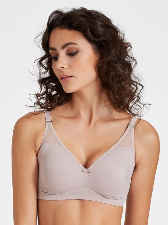 Der bügellose BH der Serie „Divine Vision“ von FELINA kombiniert hautschmeichelnde Mikrofaser mit elastischem, strukturiertem Mesh, um ein Second-Skin-Tragegefühl zu bieten. Der Soft-BH verfügt über die Brust vollständig bedeckende Cups, ein elastisches Unterbrustband und ein U-förmiges Rückendesign, wodurch der Bra auch bei großer Oberweite einen guten Halt und hohen Komfort ermöglicht.