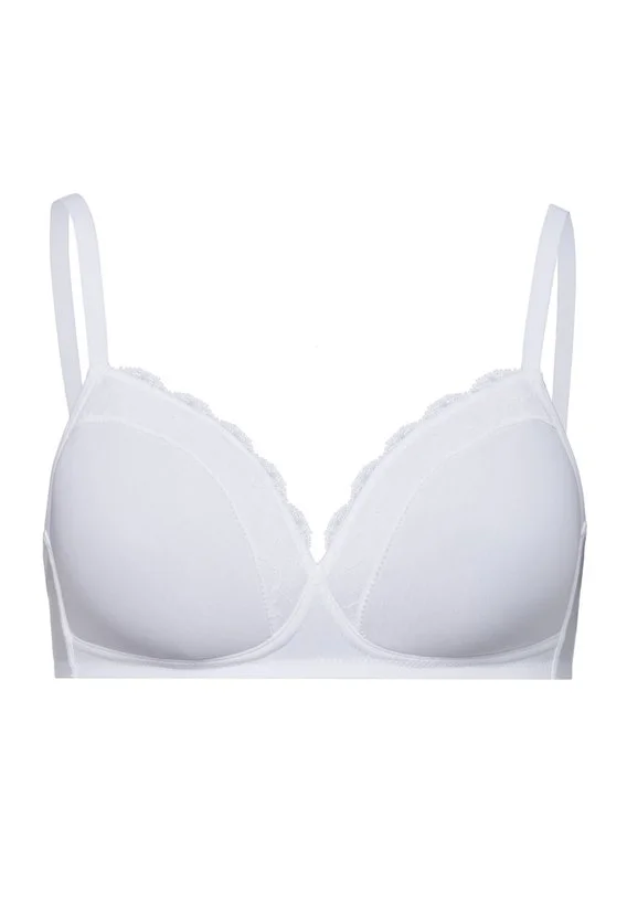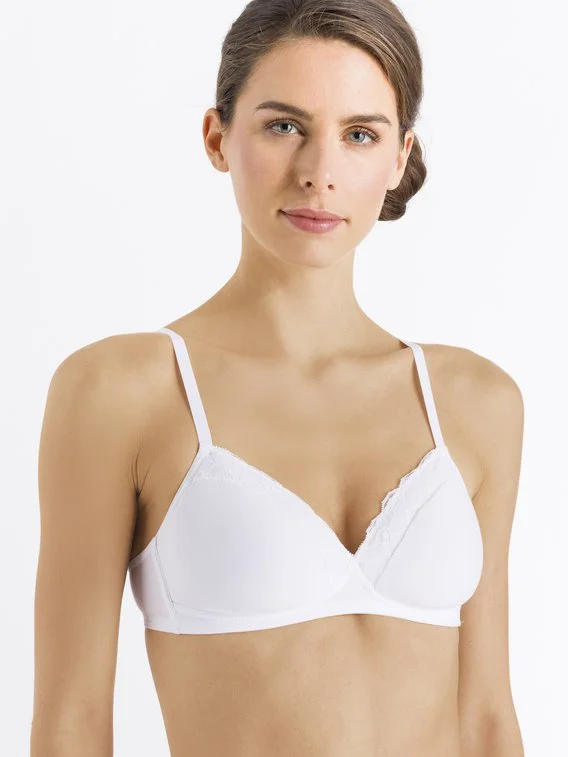 Dieser Spacer-BH von HANRO aus der Serie „Cotton Lace“ ist bügellos verarbeitet aus hochwertiger Pima Baumwolle. Durch die glatten Baumwoll-Spacer-Cups zeichnet sich der BH unter enger Kleidung nicht ab und macht eine schöne Form. Zarte Spitzendetails am Cupabschluss runden das Gesamtbild ab.