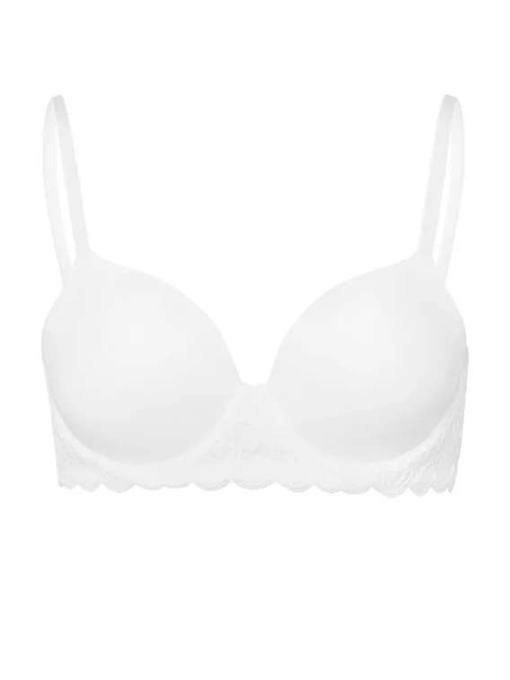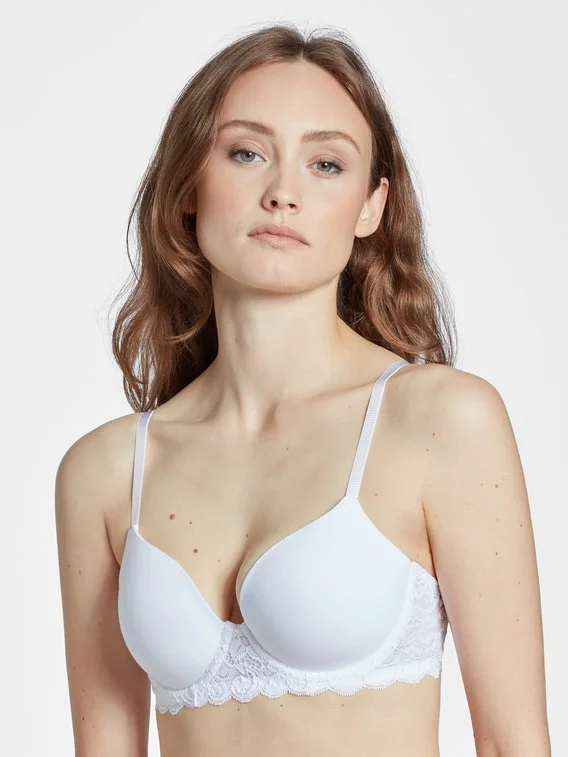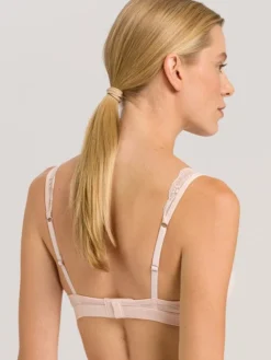 Zeitloser Schalen-BH aus der „Moments“ Kollektion von HANRO. Glatte, gepaddete Cups aus hochwertiger Baumwolle formen ein schönes Dekolleté und bieten höchsten Tragekomfort. Rahmen und Rücken des T-Shirt-BHs bestehen aus zarter Textronic-Spitze, um feminine, elegante Akzente zu setzen. Das glatte, anschmiegsame Design des BHs zeichnet sich zudem auch unter enganliegender Oberbekleidung nicht ab.