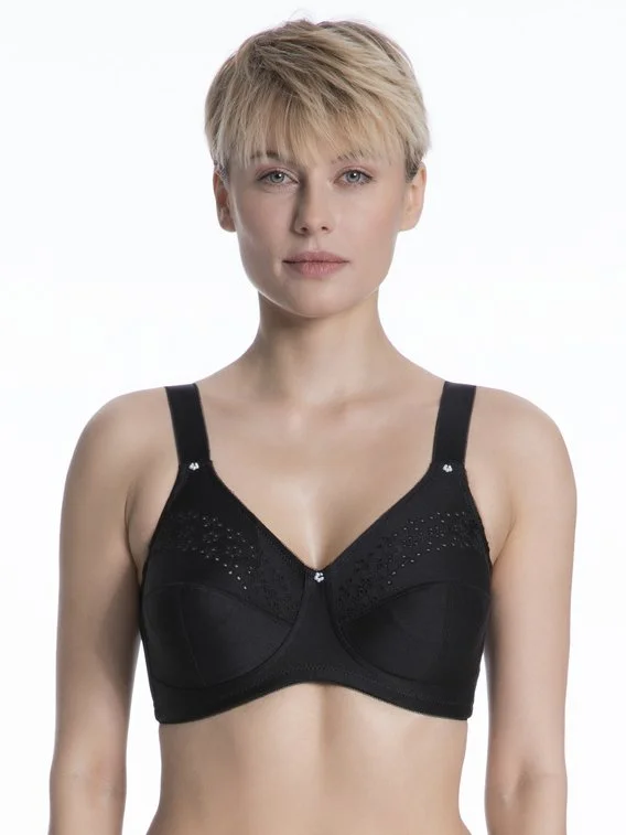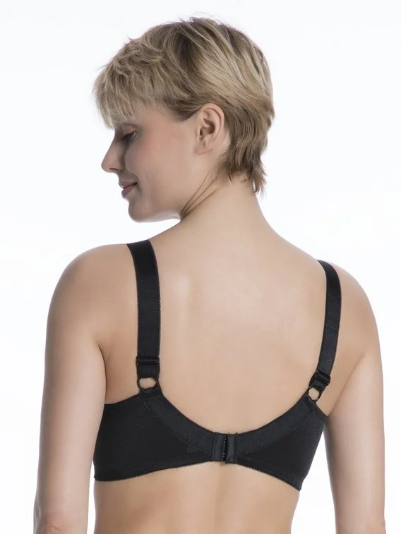 Bügelloser BH von LINGADORE aus der Bestseller Kategorie ,,Lisette“. Dieser BH mit hohem Baumwollanteil umschließt vollkommen Ihre Brüste und bietet hervorragenden Halt ohne störende Bügel. Durch zusätzliche Verstärkungen am Cup und an den Seiten sowie durch breite Träger ermöglicht der BH einen perfekten Sitz.