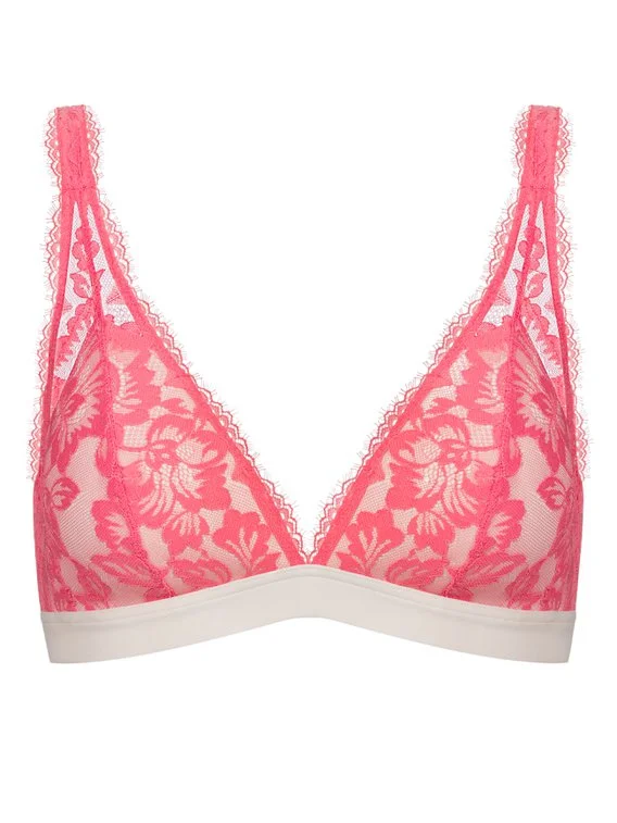 In verführerischer Spitze präsentiert sich der Triangel-BH von MEY aus der „Poetry Vogue“-Serie. Der weiche Material-Mix und die aus Spitze gearbeiteten High-Apex-Träger sorgen zusammen mit dem elastischen Unterbrustband für einen angenehmen Tragekomfort. Die gepaddeten Cups zaubern ein schönes Dekolleté und lassen mit dem femininen Design einen atemberaubenden Blickfang entstehen.