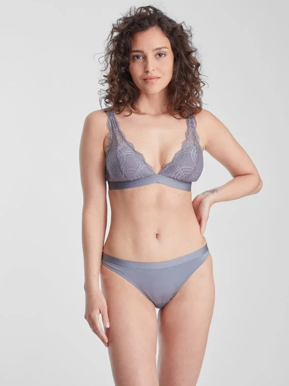 Der Triangel-BH der Serie „Poetry Fame“ von MEY überzeugt mit einer modernen Schnittform, aufwändig gearbeiteter Spitze und einem hohen Tragekomfort. Die bügellosen Cups sind blickdicht unterlegt und setzen das Dekolleté dank transparenter Bogenspitze und tiefen Ausschnitts gekonnt in Szene. Das elastische Unterbrustband des bügellosen BHs sorgt dabei für einen optimalen Halt und einen bequemen Sitz.