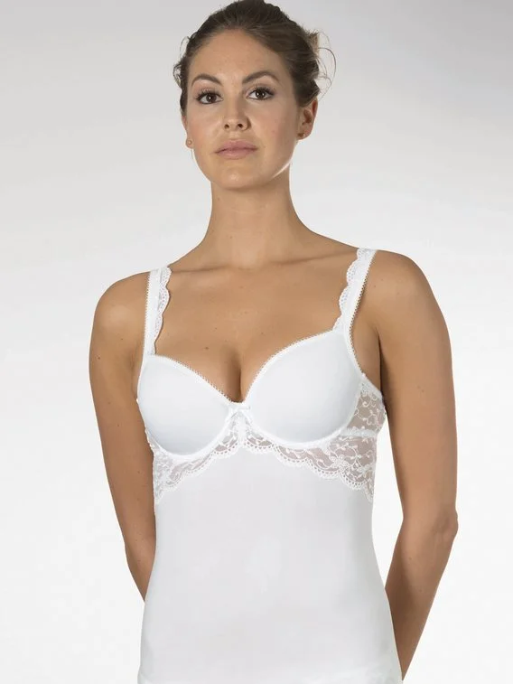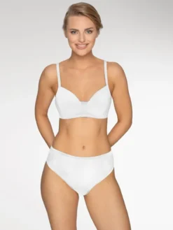 Die leicht gefütterten, vorgeformten Cups des BH-Hemds der Serie „Silver Edition“ von NINA VON C. zaubern ein absolut natürliches Dekolleté. Die Besonderheit des T-Shirt BHs sind die weichen Spacer-Cups mit einer extra leichten, dünnen Verarbeitung und hoher Atmungsaktivität. Besonders toll ist die Kombination aus funktionellem BH und komfortablem Unterhemd.