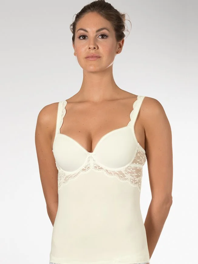 Die leicht gefütterten, vorgeformten Cups des BH-Hemds der Serie „Silver Edition“ von NINA VON C. zaubern ein absolut natürliches Dekolleté. Die Besonderheit des T-Shirt BHs sind die weichen Spacer-Cups mit einer extra leichten, dünnen Verarbeitung und hoher Atmungsaktivität. Besonders toll ist die Kombination aus funktionellem BH und komfortablem Unterhemd.