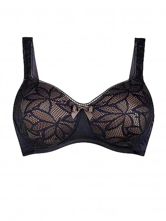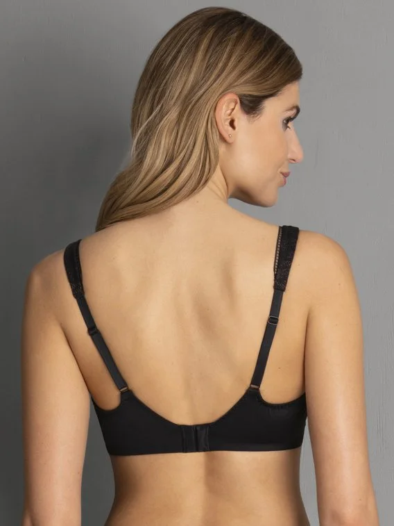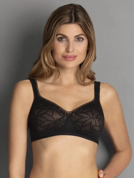ROSA FAIA präsentiert mit dem Soft-BH der Serie ,,Selena“ einen schlichten, aber modischen BH, der bis in große Größen einen komfortablen Halt bietet. Der bügellose BH schmiegt sich dank weicher Mikrofaser angenehm an die Haut während die erhöhten Seiten und breiten Träger einen idealen Sitz bieten. Die feminine, grafische Spitze rundet das ansonsten cleane Design perfekt ab.