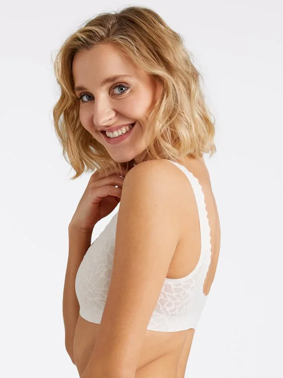 Die Serie „ZERO Feel Lace 2.0“ verspricht eine bügellose Freiheit mit dem Bralette von SLOGGI. Die wunderschöne, dreidimensionale Spitze aus feiner Mikrofaser mit dekorativer, edler Bogenkante erzeugt einen schöne Optik. Die Dot Bonding Technologie sorgt für einen unsichtbaren Look und schafft einen extra hohen Komfort. Feines Mesh und leicht gepolsterte Cups machen das Bralette aus.