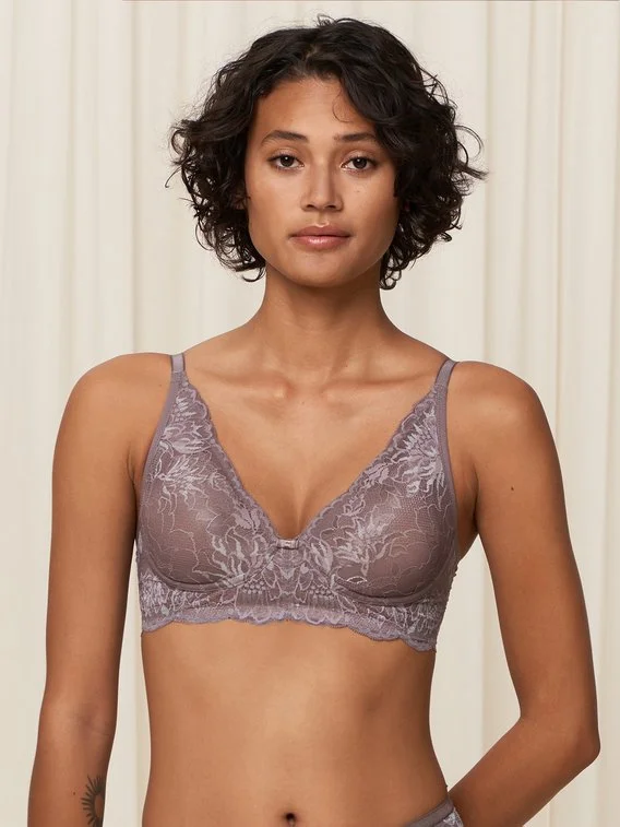 Der Soft-BH mit Spitze aus der „Amourette Charm“-Kollektion von Triumph wurde entworfen, um auszusehen und zu sitzen wie ein Bügel-BH, aber mit der Freiheit und dem Komfort eines nicht bedrahteten Bustiers. Das flache, anschmiegsame Design und der nahtlose Spitzen-Cup sorgen für Unsichtbarkeit unter der Kleidung. Die Spitze im zarten Look passt zu jeder Brustform und schafft ein elegantes Aussehen.